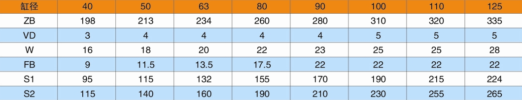 F1=頭部長方法蘭(用于缸徑D≤125);